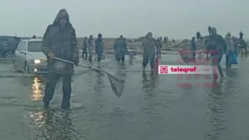 Bakıda göl daşdı, balıqlar ətrafa yayıldı - Foto