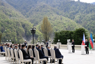 Azərbaycan və Ukrayna prezidentləri mətbuata bəyanatlarla çıxış ediblər