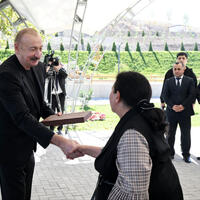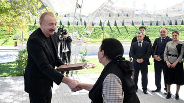 28 Oktyabr 19:26 - Prezident İlham Əliyev Cəbrayıl rayonunun Horovlu kəndinin sakinlərinə mənzillərin açarlarını təqdim edib
