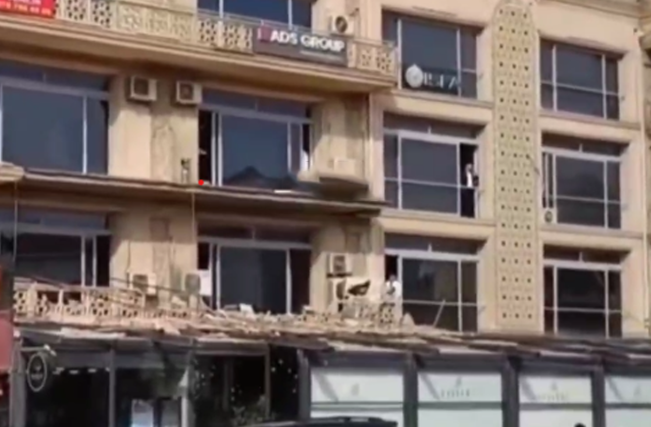 Dörd mərtəbəli binanın ikinci mərtəbəsində balkon birinci mərtəbədə olan restoranın üzərinə uçub.
