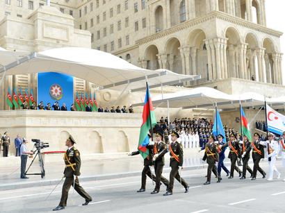 "Parada hazırlıqla bağlı Azərbaycan Respublikasının Silahlı Qüvvələrinin, o cümlədən Azərbaycan Ordusunun bölmələri ilə məşqlər keçirilir.
