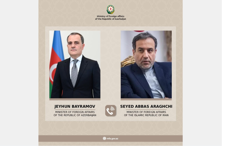 Azərbaycan Respublikasının xarici işlər naziri Ceyhun Bayramov ilə İran İslam Respublikasının xarici işlər naziri Seyid Abbas Əraqçi arasında telefon danışığı baş tutub.