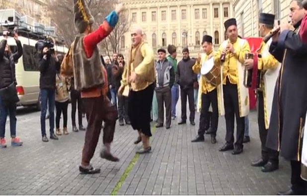 Daha sonra Atəşgahdan od götürən bayram karvanı geriyə qayıdaraq, Qış Bulvarına doğru istiqamət alıb. Bayram tədbiri incəsənət ustalarının iştirakı ilə davam edib.