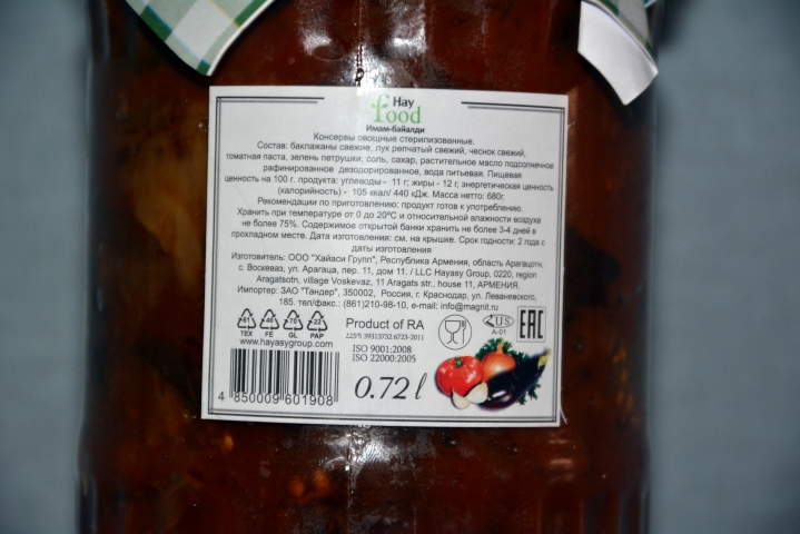 Milli mətbəximizə aid olan bəzi qida məhsullarının üzərindəki ticarət nişanlarında Ermənistan brendi olduğu göstərilir, üstəlik istehsal edildiyi tarixi Azərbaycan torpaqları - Xankəndi şəhəri, Xocalı rayonu Ermənistan ərazisi kimi göstərilməklə satışa təqdim olunur.