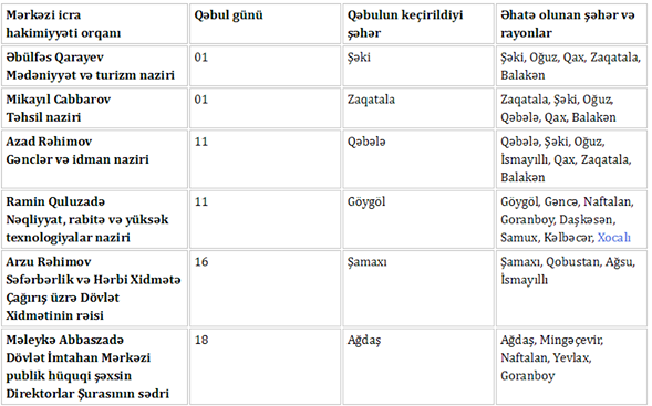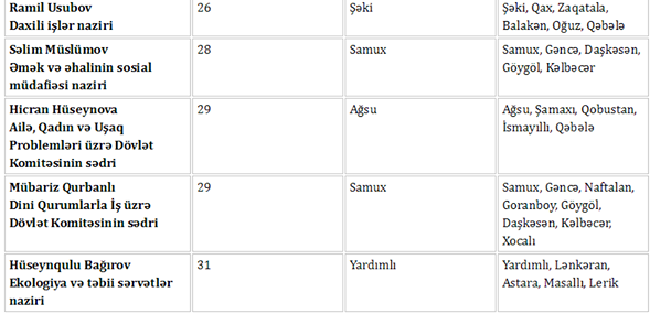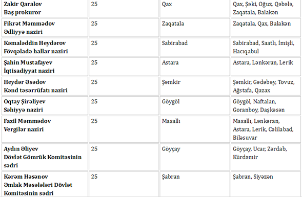 Nazirlərlə görüşmək istəyirsiz? - Cədvəl