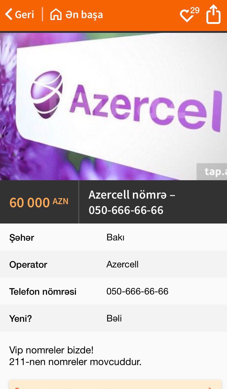 Azərbaycanda 60 000 manata mobil nömrə satılır.