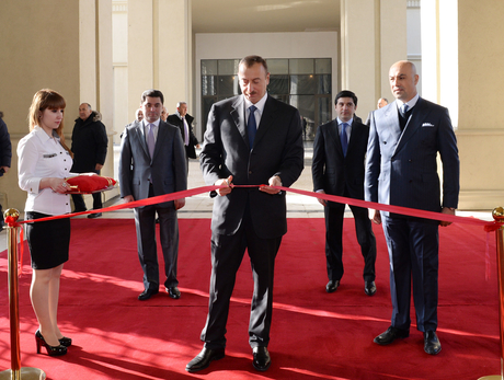 Dövlət başçısı otelin rəmzi açılışını bildirən lenti kəsib, komplekslə tanış olub.