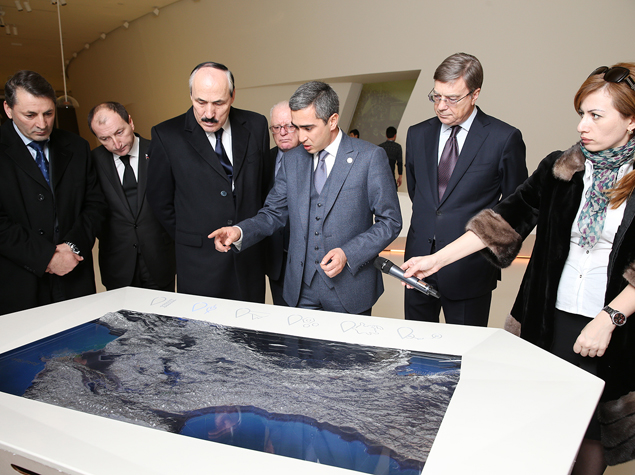 R.Abdulatipov Mərkəzdəki Heydər Əliyev Muzeyində H.Əliyevin həyatını və siyasi fəaliyyətini əks etdirən foto və video materiallarla, eksponatlarla tanış olub.