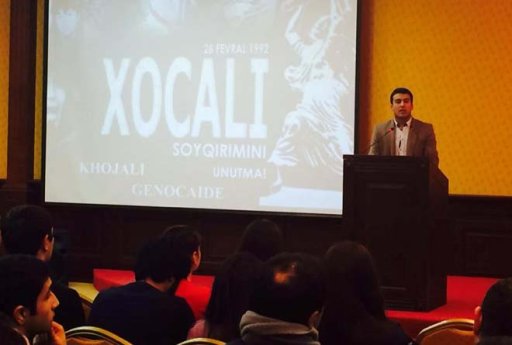 Anım mərasimində Ukrayna Azərbaycanlı Gənclər Birliyinin sədri Anar Tahirov çıxış edərək, 22 il bundan öncə ermənilərin Xocalı şəhərində azərbaycanlılara qarşı həyata keçirtdikləri soyqırım siyasəti haqqında ətraflı məlumat verib. Erməni silahlı qüvvələrinin Xocalı şəhərində törətdikləri kütləvi qırğınları qəddarlıq baxımından bəşər tarixinin ən amansız səlnaməsi kimi səciyyələndirən birliyin sədri Xocalıda və Azərbaycanın digər bölgələrində şəhid olan qəhrəman oğul və qızlarımızın qanının yerdə qalmayacağını vurğulayıb:
