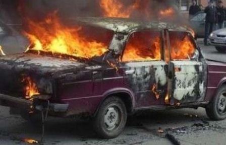 Şəkidə maşın yandı