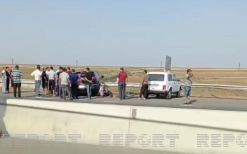 İlkin məlumata görə, toy kortecində olan gəlin maşını maneəyə çırpılıb.