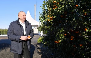 Dövlət başçısı “Lenk Frut” Məhdud Məsuliyyətli Cəmiyyətinin (MMC) Lənkəran rayonunun Separadi kəndində yeni salınmış sitrus bağında yaradılan şəraitlə tanış olub.