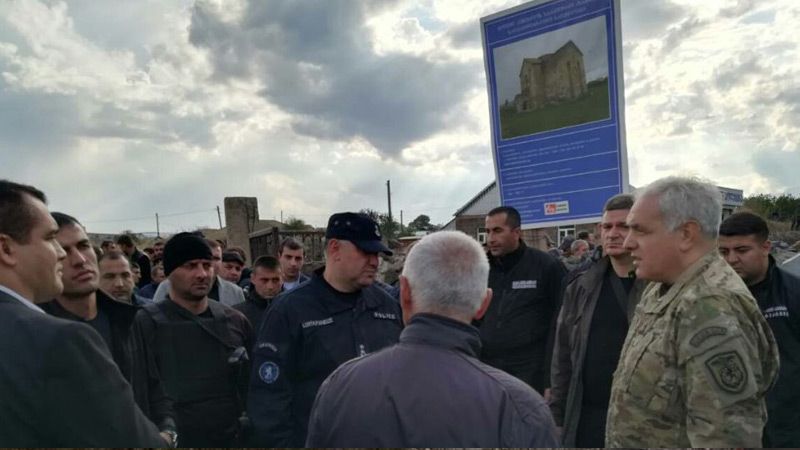 APA-nın yerli bürosu məlumata istinadla xəbər verir ki, bir qrup yerli sakin Kumudro kəndində X əsrə aid olan və bərpası davam etdirilən kilsəyə daxil olmağa cəhd ediblər: “Mühafizə polisi vətəndaşlara kilsə ərazisinə daxil olmağa icazə verməyib və bundan sonra bəzi sakinlər polis əməkdaşlarına qarşı fiziki güc tətbiq edərək onlara daş atıblar. İnsident nəticəsində polis əməkdaşları xəsarət alıb və nazirliyə məxsus maşınlara ziyan dəyib. Daxili işlər naziri Giorgi Mqebrişvili hadisə yerində olub və yerli sakinlərlə görüşüb. Hazırda kənddə vəziyyət sakitdir”.