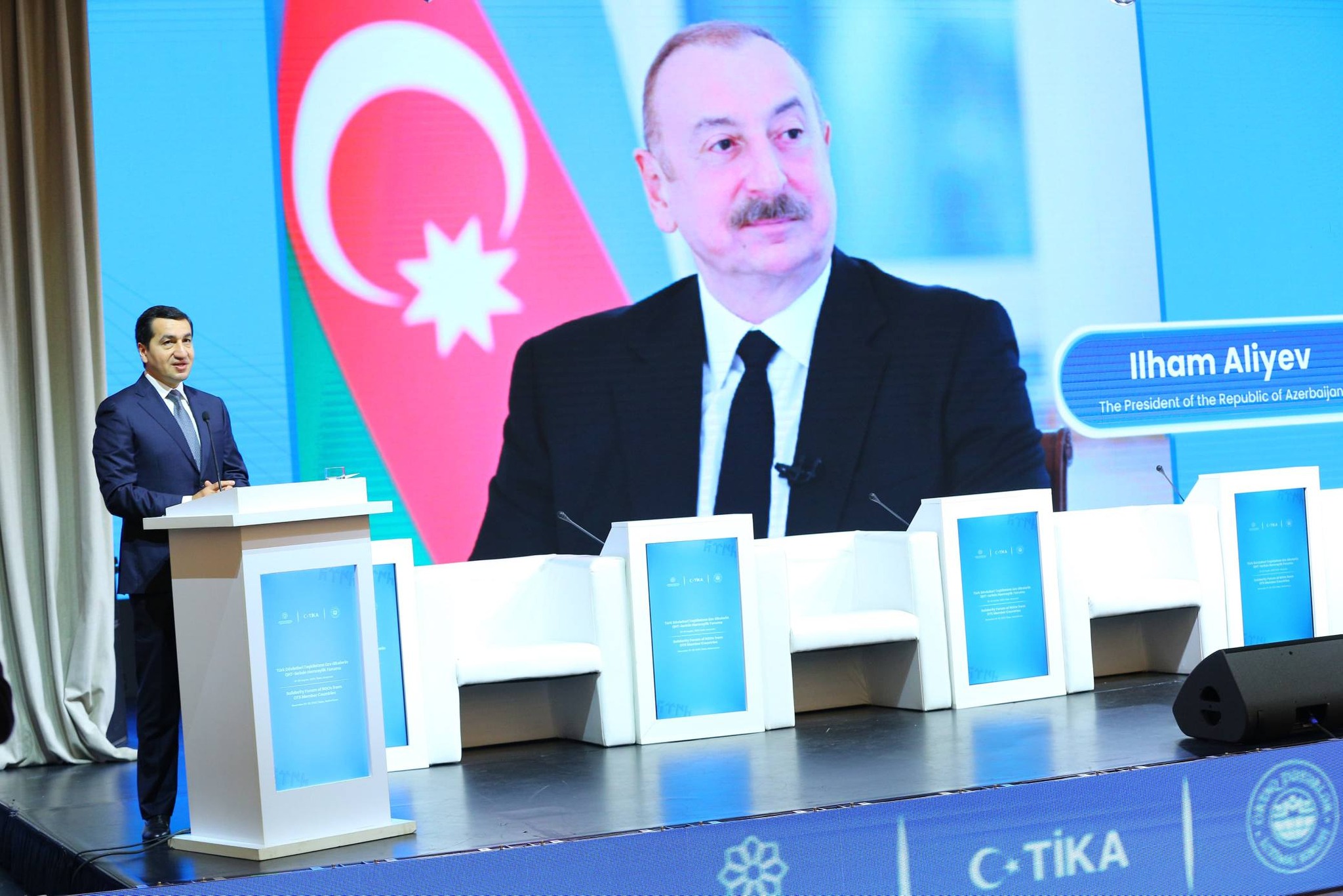 Forumun açılışında Prezidentin köməkçisi, Prezident Administrasiyasının şöbə müdiri Hikmət Hacıyev tribunadan dövlət başçısı İlham Əliyevin tədbir iştirakçılarına ünvanladığı müraciəti səsləndirdi.