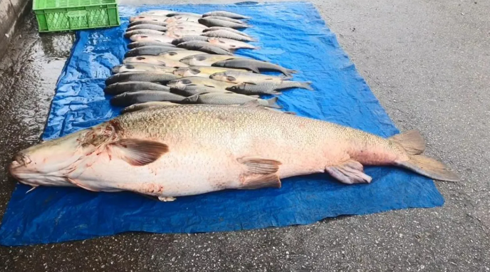 Elazığda həvəskar balıqçılar Murad çayında 52 kiloqramlıq nəhəng durna balığı tutublar.