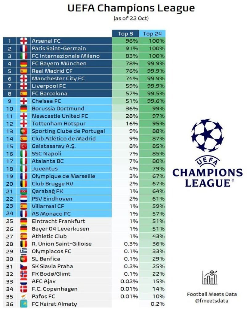 "Football Meets Data" portalı komandaların növbəti mərhələyə çıxmaq şansını hesablayır.