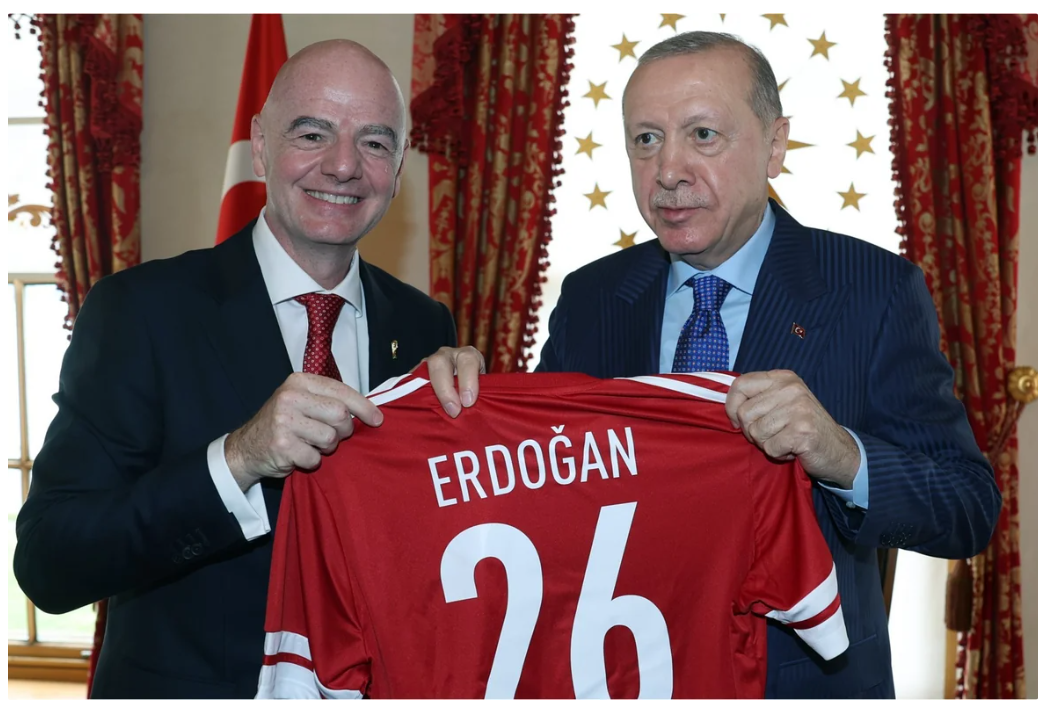 Qeyd olunub ki, görüşdə FIFA prezidenti Türkiyə liderinə top və forma hədiyyə edib.