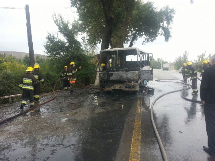 Göyçay rayonunda sərnişin avtobusu yanıb.