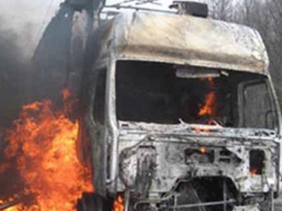Yük maşını yanaraq kül oldu