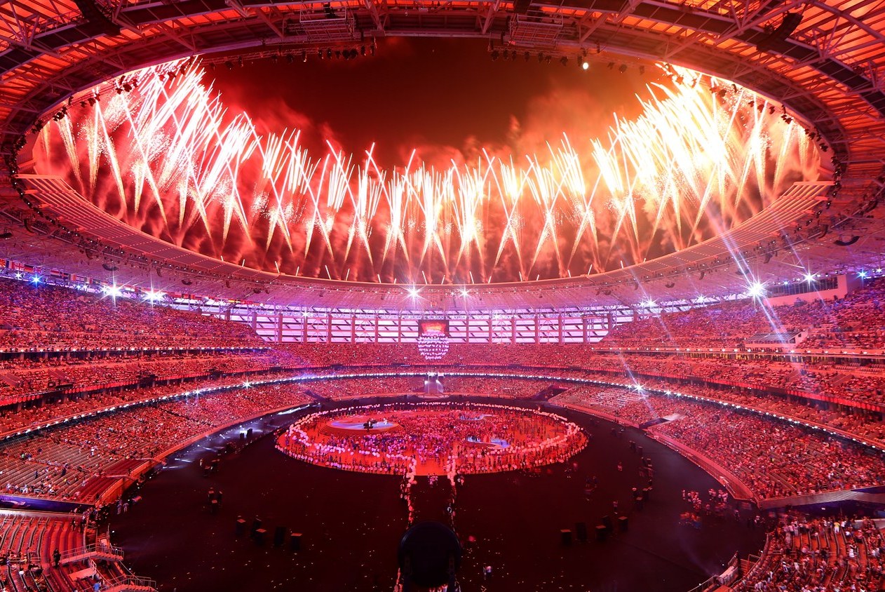 Sonra idmançılar kütləvi şəkildə stadiona daxil olublar. Mərkəzi səhnə ətrafında addımlayaraq tribunalarda onlar üçün xüsusi ayrılmış yerlərə keçiblər. Məlumat üçün bildirək ki, 17 gün davam edən yarışlarda 6 mindən çox idmançı 253 medal dəsti uğrunda mübarizə aparıb. Medal cədvəlində ilk üç sırada Rusiya, Azərbaycan və Böyük Britaniya qərarlaşıb.