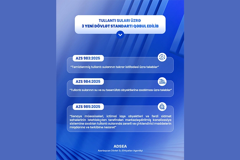* AZS 983:2025– "Təmizlənmiş tullantı sularının təkrar istifadəsi üzrə tələblər";