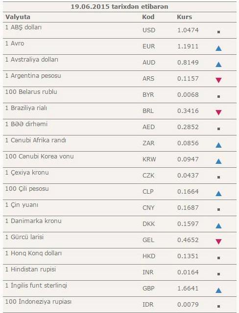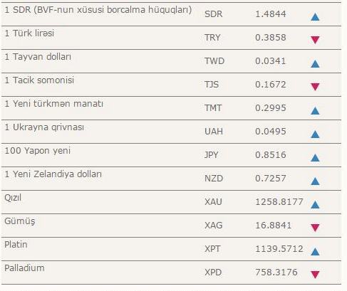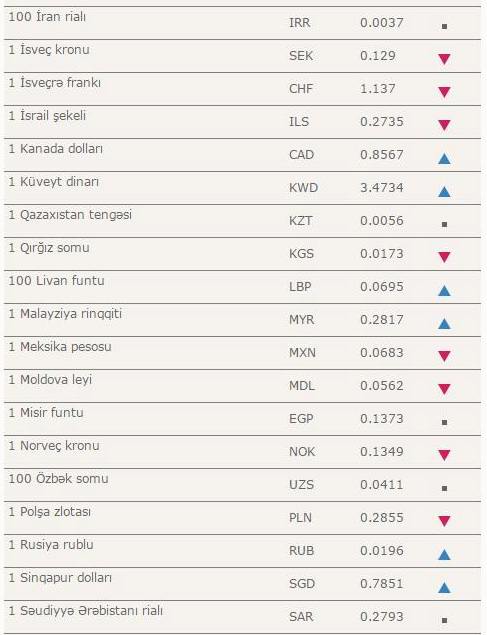 Manatın bugünkü məzənnəsi – Cədvəl