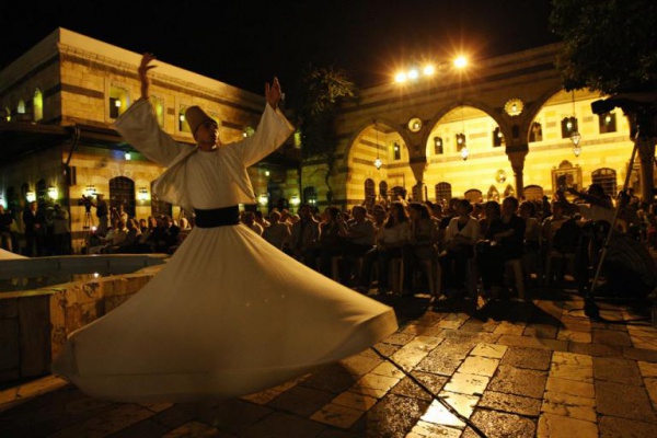 2008-ci il. Aleppodakı bazarın alıcıları dərviş rəqsini izləyirlər.