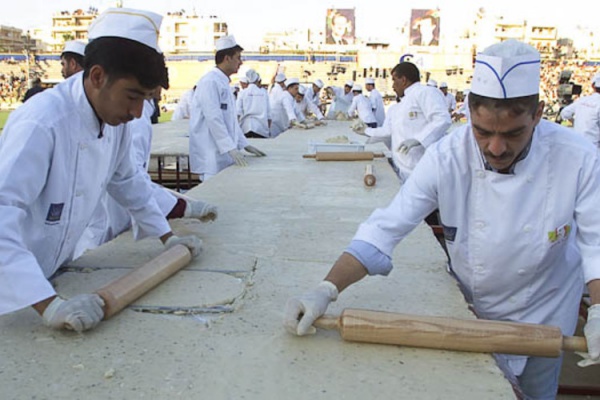 2003-cü il. Suriya aşbazları Aleppo stadionunda 4 ton ağırlığında marzipan və püstəli tort hazırlayırlar. Həmin vaxt suriyalılar 200 kvadrat mertlik tort hazırlamaqla niderlandlıların rekordunu təzələmişdilər.