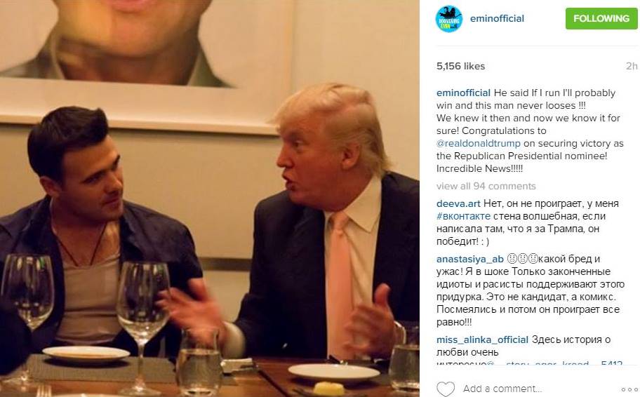 AzNews.az xəbər verir ki, Emin Ağalarovun milyarderin heç vaxt məğlub olmadığı qeydini yazıb: "Biz o zaman da bunu bilirdik və indi biz buna əminik! Respublikaçılar partiyasından prezidentliyə namizəd kimi qələbənin təmin olunması münasibətilə təbriklər! İnanılmaz xəbərdir!!!