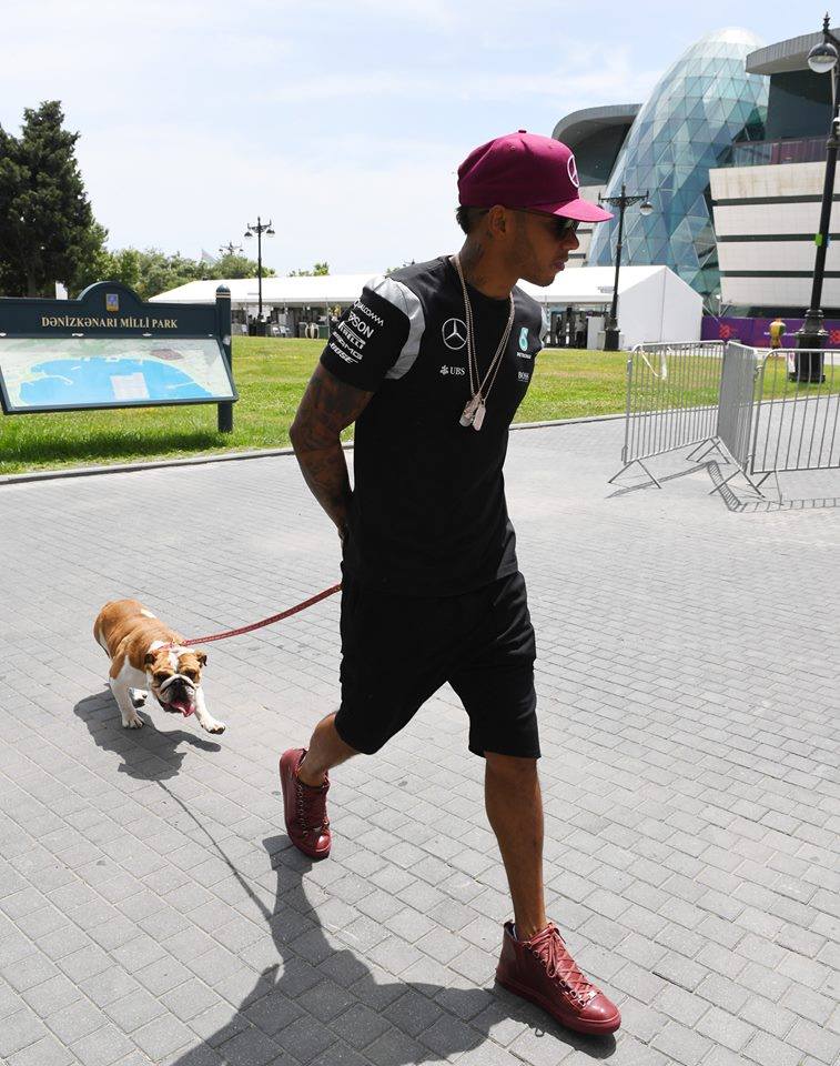 Paytaxtımızda qonaq olan pilot isə elə diqqətləri üzərinə çəkə bilib. Belə ki, Hamiltonun itini də özü ilə gətirməsi marağa səbəb olub. Hamilton şəhəri gəzərkən iti də yanında olub.