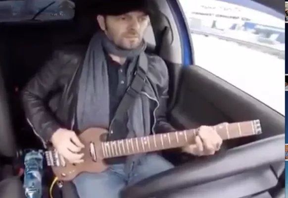 Gitaraçı Violet Poluxin avtomobili idarə edə-edə gitarada ifa edib.