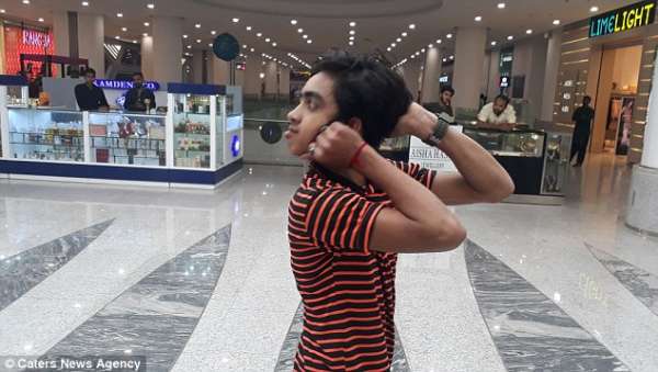 Bir neçə aylıq məşqlərdən sonra o, əli ilə başını 180 dərəcə döndərə bilib.