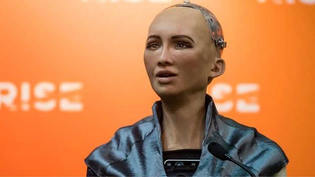 Amerikanın Honkonqda mənzilənmiş Honson Robotics şirkəti tərəfindən hazırlanmış Sophia, auditoriyaya heç bir baş örtüsü olmadan, ingiliscə müraciət edib.