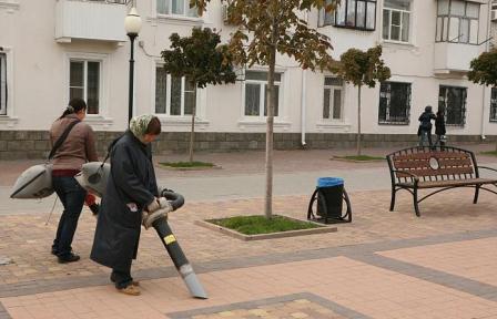 Bu şəhərin küçə və səkiləri tozsoranla təmizlənir
