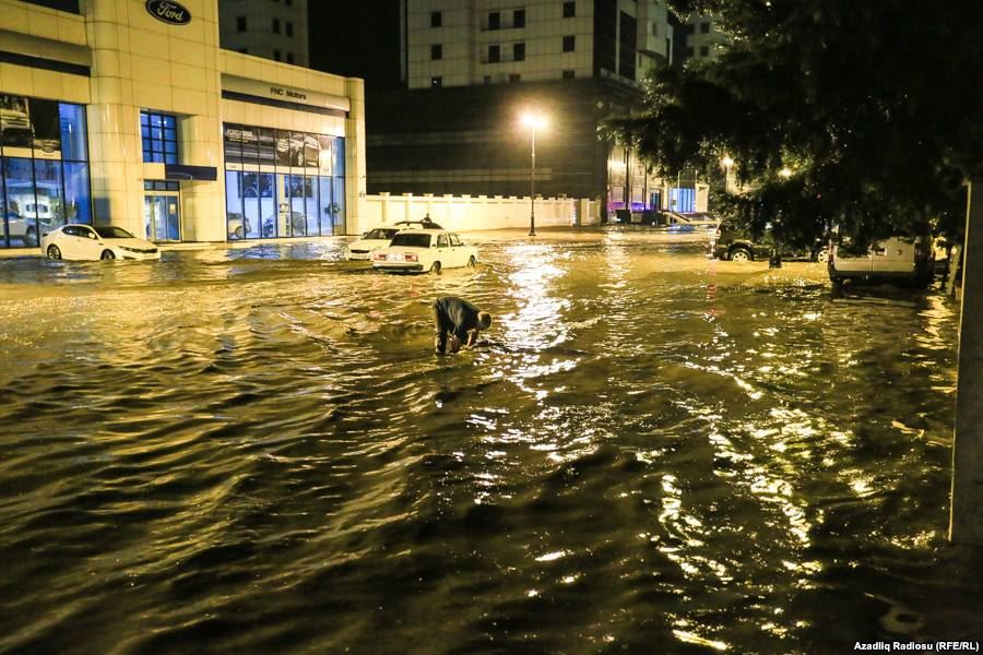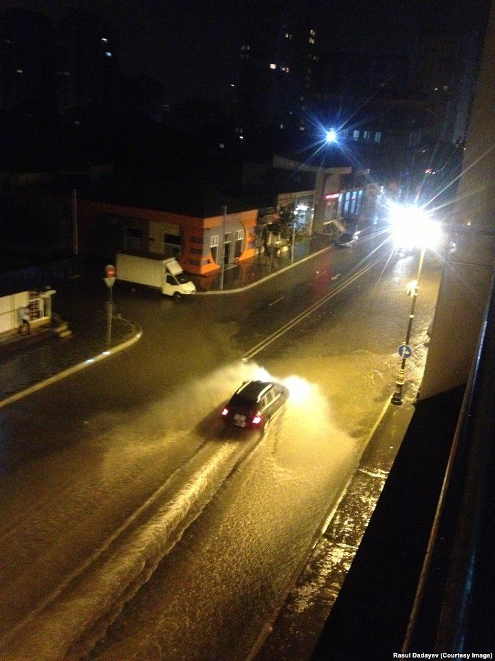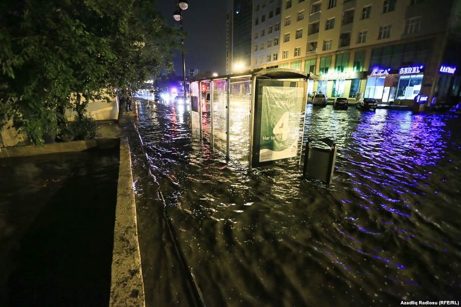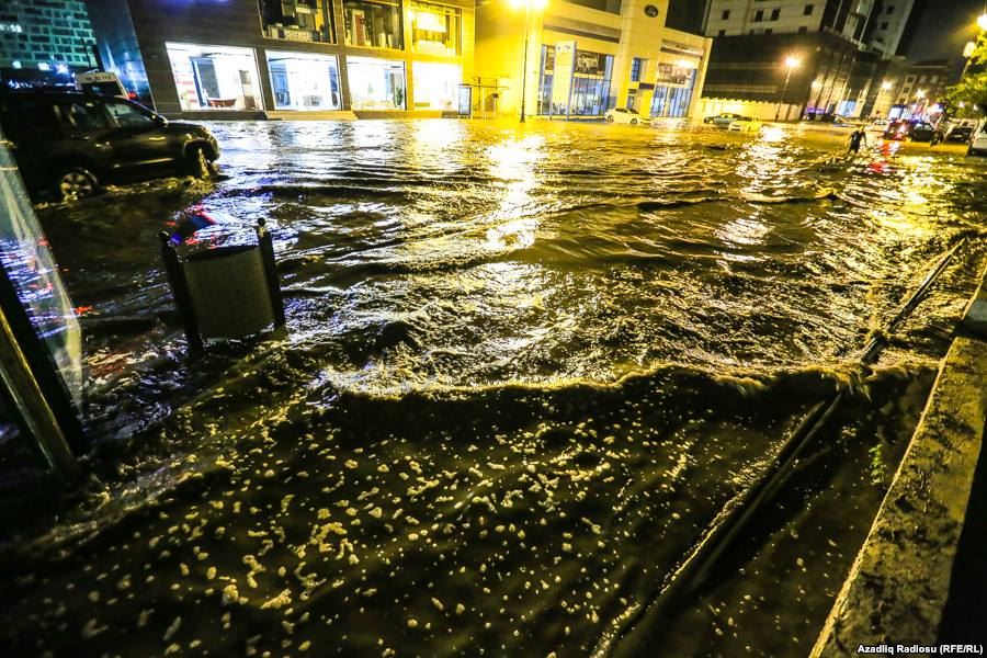 Şəhərin bəzi küçələri yağış suyunun altında qalıb. AzNews.az Azadlıq radiosuna istinadən yağışdan sonra su altında qalmış küçələrdən çəkilmiş fotoları təqdim edir: