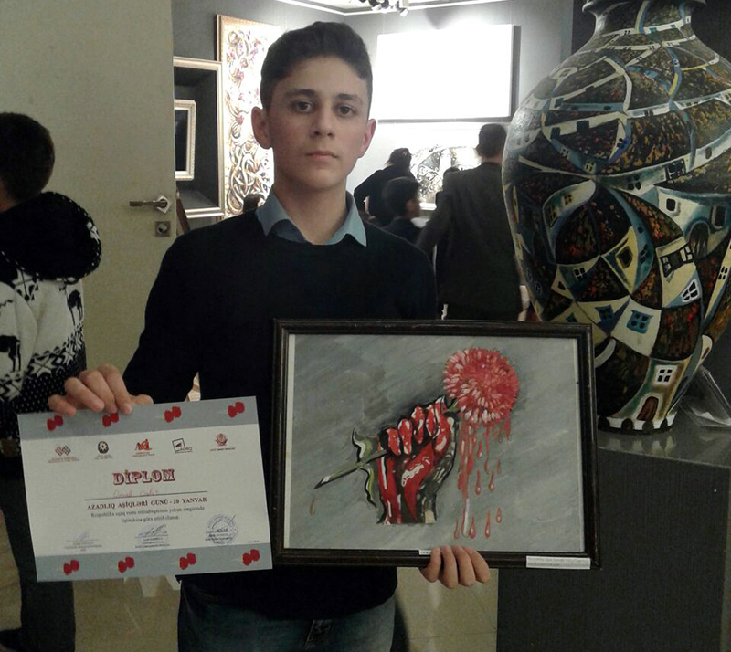 “Cabir əslən Saatlı rayonundandır. 8-ci sinifdə oxuyur. Bu günə kimi heç bir rəsm təhsili almayıb, rəssam yanında da olmayıb. Sadəcə, içindən gələn hisslərini rəsm əsərlərinə köçürür. Fiziki qüsurludur, eşitmək və danışmaq problemi var. Şəkil çəkmək istedadı onda anadangəlmədir. Xocalı faciəsini də fırçaya alıb”.