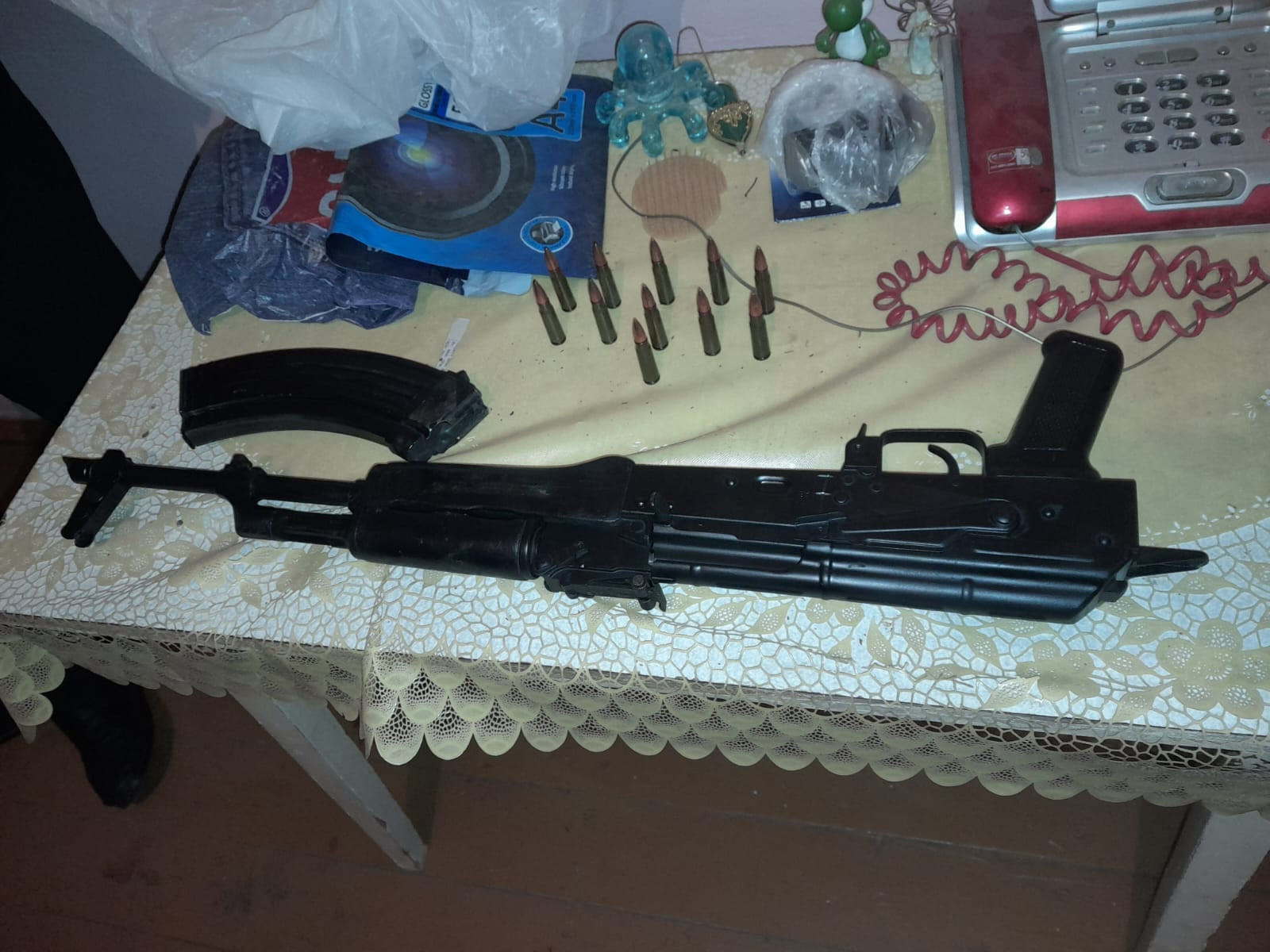 Onun üzərinə keçirilən baxış zamanı çəkisi 50 qrama yaxın olan marixuana, yaşadığı evdən isə 1 ədəd avtomat, 1 ədəd daraq və 11 ədəd patron aşkarlanaraq götürülüb.