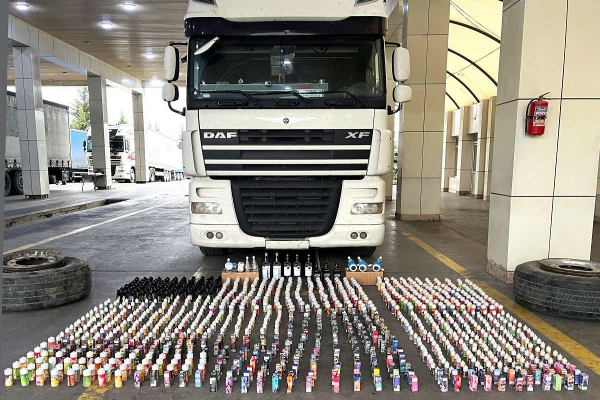 Yoxlama zamanı nəqliyyat vasitəsinin qoşqusundakı ehtiyat təkərlərin içərisindən, gömrük nəzarətindən gizlədilən 1066 ədəd müxtəlif markalı elektron siqaretlər üçün maye, ümumi həcmi 7,1 litr olan müxtəlif markalı spirtli içkilər və digər mallar aşkar edilib.