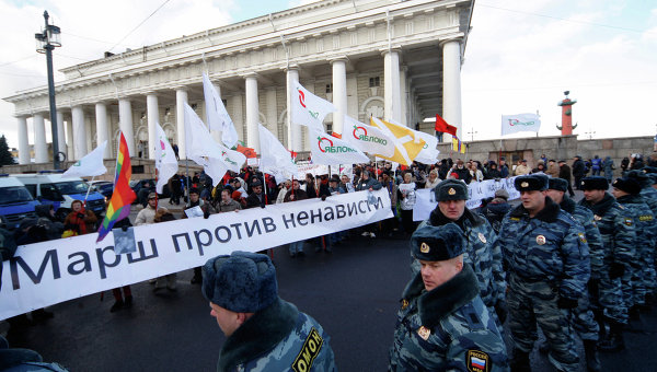 Bu saatlarda Rusiyanın şimal paytaxtında 10-cu dəfədir keçirilən "Nifrətə qarşı yürüş"də 200-ə yaxın adam iştirak edir.
