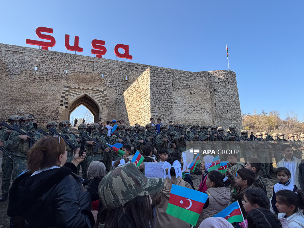 Şuşada Zəfərin beşinci ildönümünün qeyd olunması münasibətilə hərbi orkestrin müşayiəti ilə yürüş keçirilib.