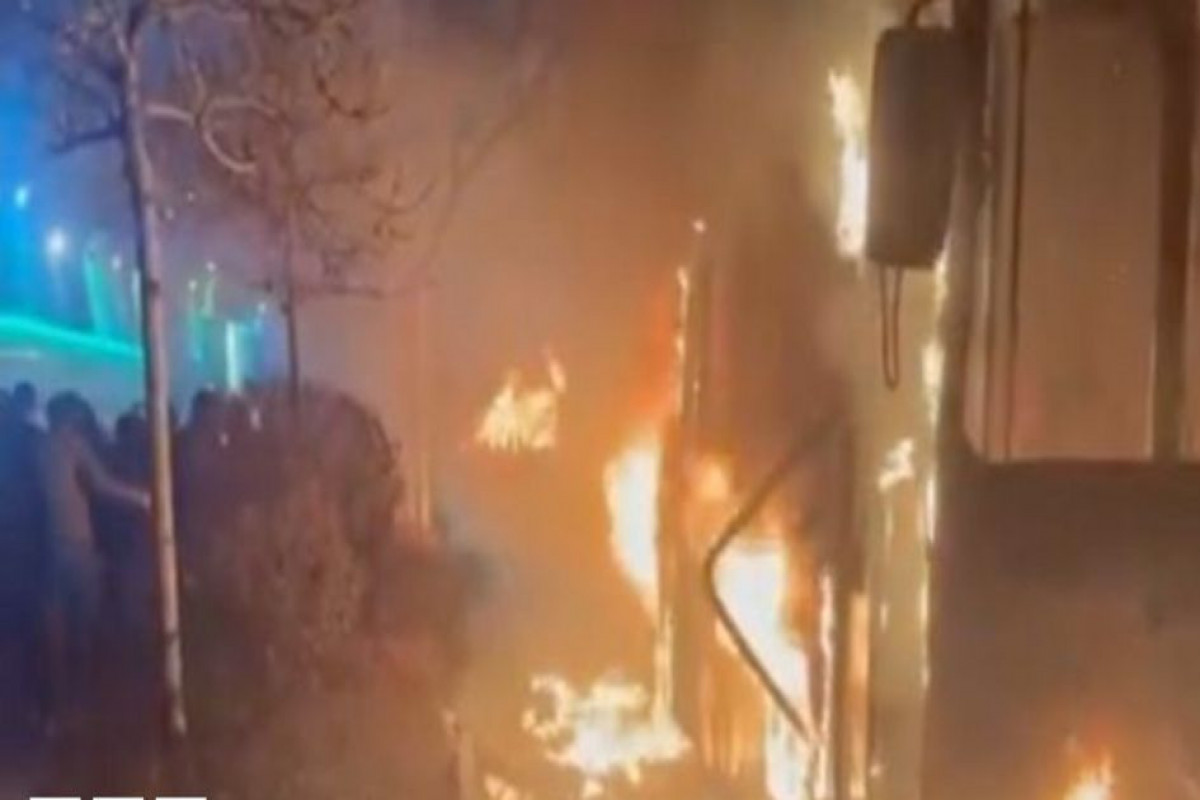 Maskalı etirazçılar konteynerlərin və yandırılmış tonqalların arxasında gizlənir, uzaqda isə təhlükəsizlik qüvvələrinin sırası görünür. Avtobusa bənzər bir nəqliyyat vasitəsinin alov içində olduğu da kadrlarda yer alır.