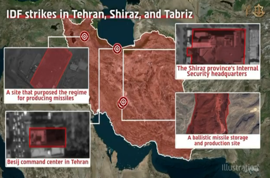 İsrail Hərbi Hava Qüvvələrinin onlarla qırıcısı İranın Tehran, Şiraz və Təbrizdə yerləşən hərbi obyektlərə növbəti hava zərbəsi dalğasını tamamlayıb.