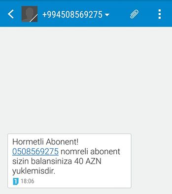 "Yeni fırıldaq növü yaranıb. Siz də mənim kimi aldanmayın. Az öncə telefonuma 050-856-92-75 nömrəsindən zəng edən şəxs, guya, səhvən balansıma pul yüklədiyini söylədi. Baxdım ki, doğrudan da telefonuma bu barədə SMS gəlib. Özünü Elvin kimi təqdime dən həmin şəxs rica etdi ki, məbləği geri göndərim. Heç bir hiylə hiss etmədən, elə də etdim. Sən demə, hesabıma yüklənməsi haqda gələn SMS-i göndərən mobil operator deyilmiş, elə o adamın özü imiş. Ehtiyatlı olun, əzizlərim. Camaatın qəlb təmizliyindən haramcasına istifadə edən belə oğrulara, cibgirlərə, şərəfsiz müftəxorlara inanmayın".