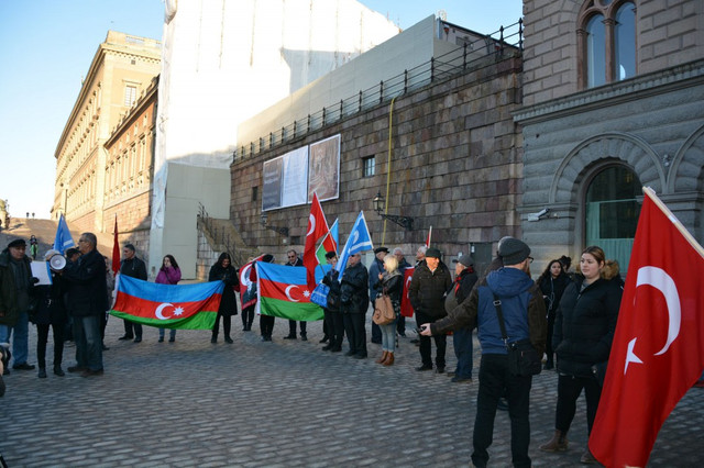 İsveçin paytaxtı Stokholmda türk və Azərbaycan diaspor təşkilatlarının nümayəndələri ölkə parlamentinin (Riksdaq) binası qarşısında etiraz aksiyası keçiriblər. Aksiyanın keçirilməsində məqsəd İsveç parlamentinin qondarma “erməni soyqırımı”nı tanınmasına qarşı etiraz etmək idi.