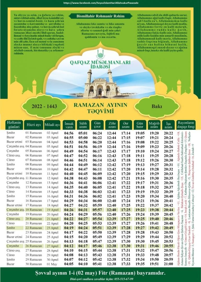 2022-ci ildə Azərbaycan Ramazan ayı aprelin 2-si başlayacaq.