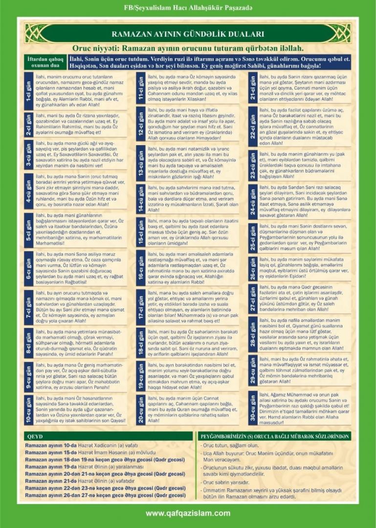 Ramazan ayı üçün gündəlik dualar